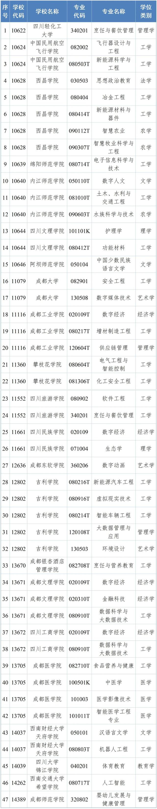四川省人民政府学位委员会办公室 今日发布公示名单 2025年拟新增 47个学士学